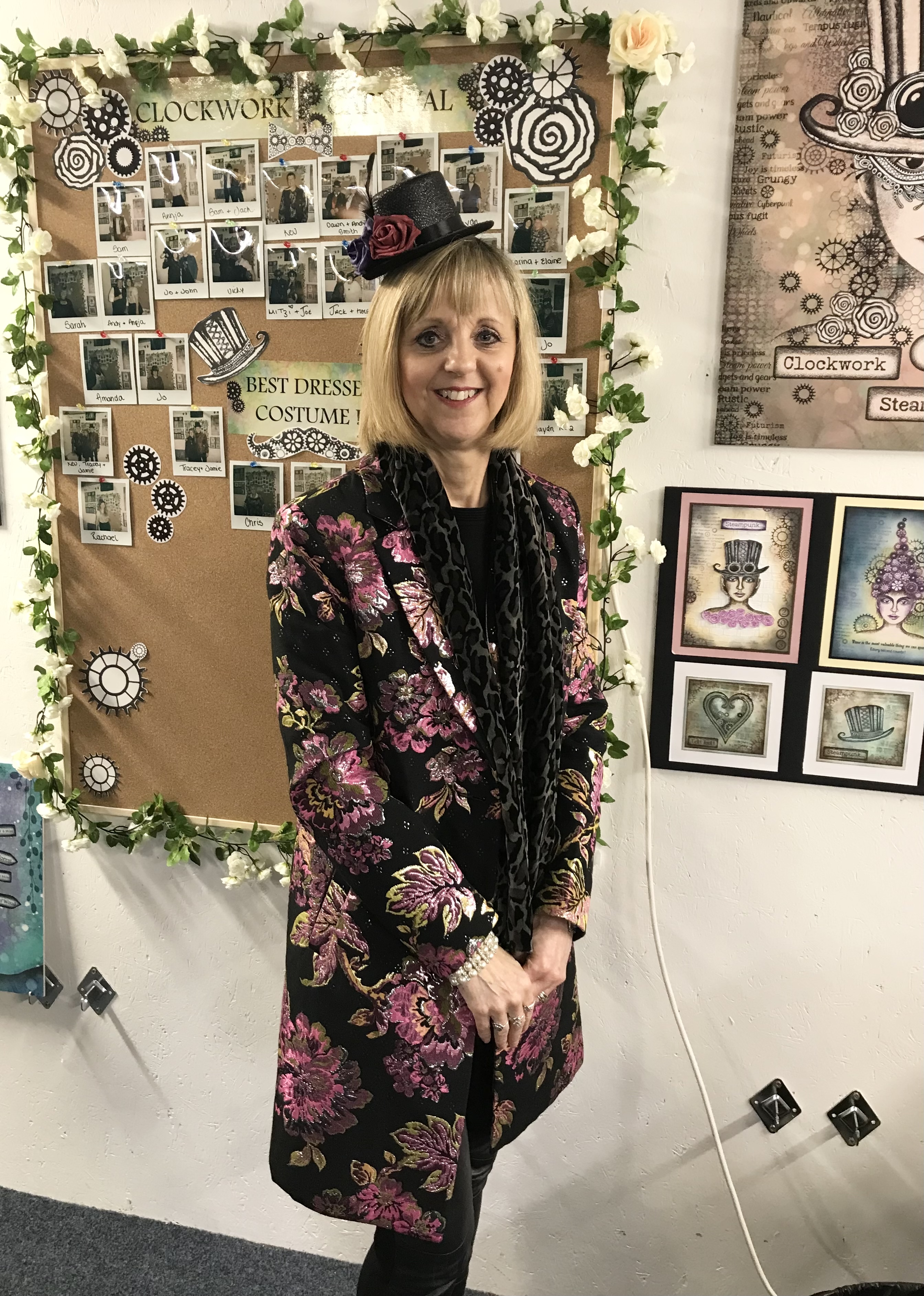I tried to get into the spirit of the event by dressing up .. .the team had asked people to go in Steampunk or Fantasy costumes if we fancied. I didn’t put together an outfit ahead of time as I wasn’t sure if I would attend, so on the day I pulled out my rarely worn Chrimbo “frock” coat and paired it with leather leggings, chunky lace up boots and a bit of dramatic lipstick and eyeliner!! Although not strictly fancy dress it really put me in the mood, and while I was there Noni in the team lent me her hat to have my picture taken ❤️. So here are a couple of pics …