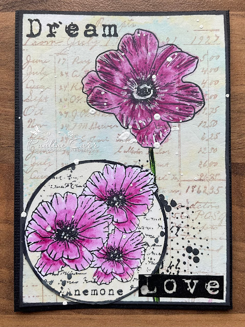 Stamps: AALL & Create #980 Anemone, #533 Bring On the Sentiments; Lost Coast Designs ATC Misc Set 6 (background script);